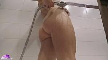 In a solo shower, a lustful babe fingered her wet pussy.
