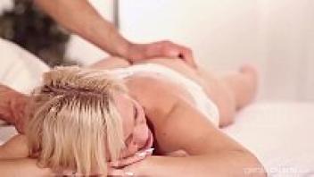 Bella, a natural blonde, has orgasms following a massage.