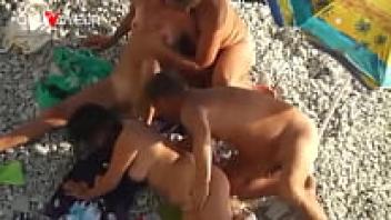 Voyeur Beach. A foursome of nude beach swingers and their wives swap