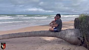 adoring her firm pussy on the beach in Recife