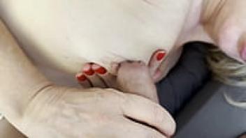 A mature stepmother offers a POV blowjob while wearing spectacles.