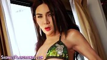 Tgirl ladyboy jerks off