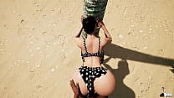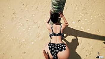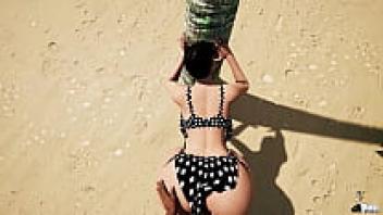 Unexpected beach sex (3D animated AI-generated) with ASMR music for pussy masturbation! AI porn