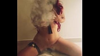 In the midst of hookah smoke, a red-haired teenage girl adores herself while holding an inflatable Dildo.