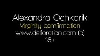 Ochakrik, a nerdy girl wearing spectacles, masturbates her sexy, naive pussy. Close-up hymen!