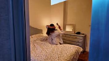 Oh my god! Thinking that her mother is sleeping while her husband is away, the stepson cums in STEPMOM.