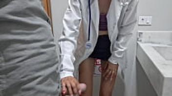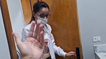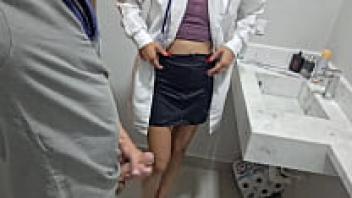 In the hospital restroom, a married nurse cheats on her husband with a staff member!