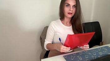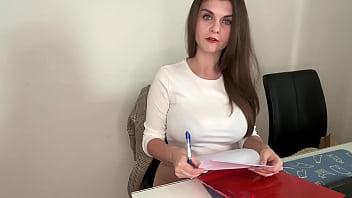 Her lustful Stepson was in the office when her stepmother's boner made a massive cumshot.