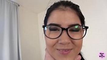 Blowjob girl gets coated with cum on her glasses | 4k