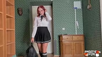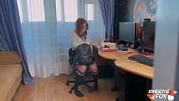 A female wearing glasses was caught masturbating Dildo while being face-loved and hard-loved.
