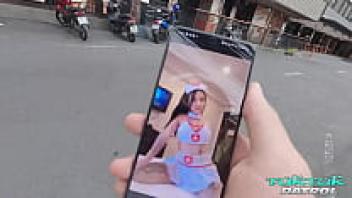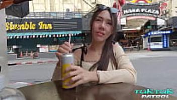 A gorgeous Korean woman with flawless tits and tattoos takes on a large white cock.