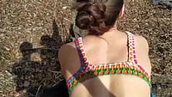 Outdoor blowjob by an amateur teen