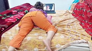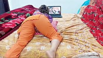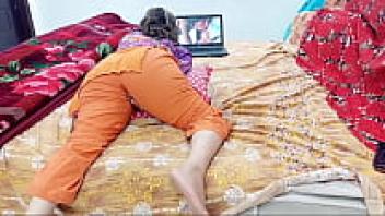 While watching porn on her laptop, an Indian girl has an orgasm.