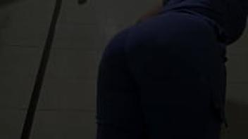 In the hospital bathroom, a bigass nurse was caught on camera peeing (bigass, urinating, Latina).