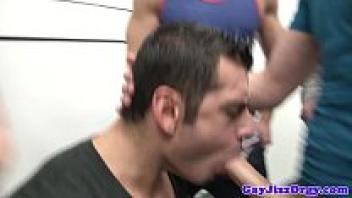 Four lustful twinks Gay orgy sex with wild chain anal love