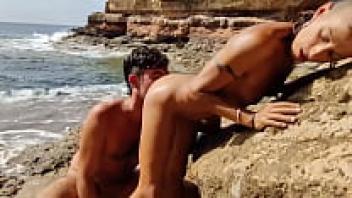 Double Penetration at the Beach for Ebony Babe: Let's Love Outside