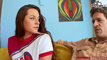 18-year-old brunette cheerleader Seduction of a teen with natural tits