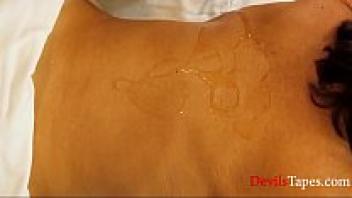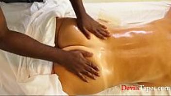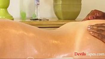 ebony porn shows an ebony babe getting oiled up for a massage.