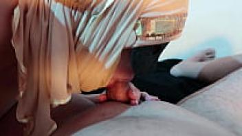 After the neighbor's lovely Moroccan wife leaves, they have oral sex.