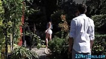 A small, natural beauty rides a dick.