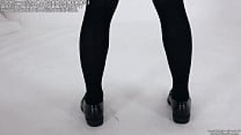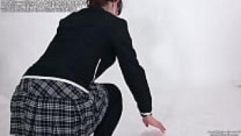 A Japanese girl flashes her white pant cameltoe and upskirt.