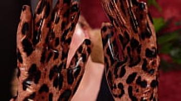 Oily face and long leather gloves. ASMR Grander, Arya. inappropriate video.