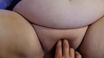 Close-up of a fingering, creamy, gushing, moist pussy upskirt