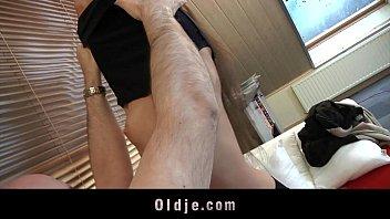 A French old man was persuaded by a cute youngster with little tits for babety-lovering.