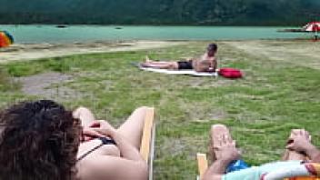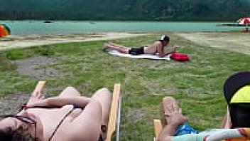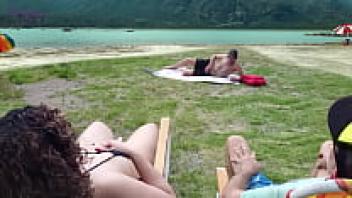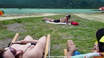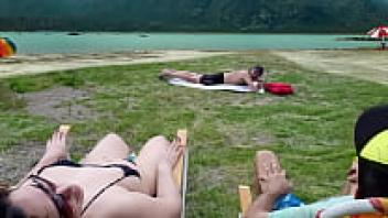 Beach Voyeur. Horny teen babe rides her boyfriend on the beach