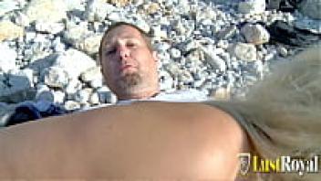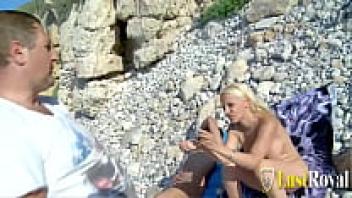 Big tits, blonde, and sex-hungry, milf Debora is in love on the beach.