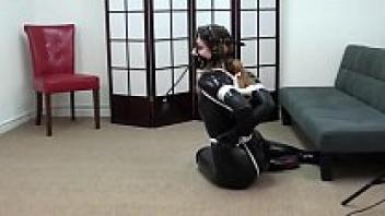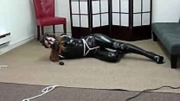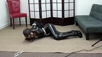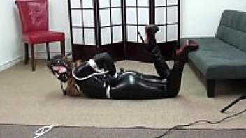 A lovely brunette wearing boots and a latex gag Bondage BDSMM