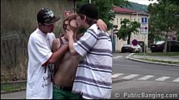 Alexis Crystal, a very attractive teenage girl, is a street gang bang.