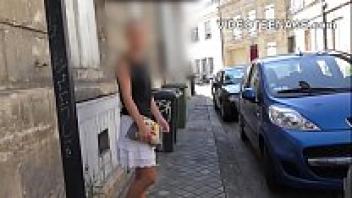 An amateur blonde with long legs begs