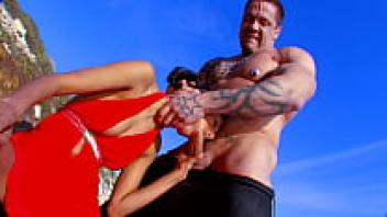 On the beach, loving a gorgeous wife