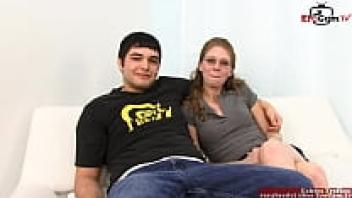 In front of the cuckold, the skinny wife wearing glasses adores the BBC.